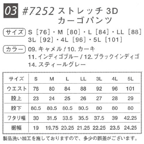 主な仕様 ●素材:綿98%、ポリウレタン2% ●カラー:9.キャメル、10.カーキ、11.インディゴブルー、12.ブラックインディゴ、14.スティールグレー ●サイズ:S〜5L 商品の特徴 ●スマートなシルエット ●ポリウレタン糸使いの生地を採用した脅威のストレッチ性 ●突き詰めた3Dカッティングによる抜群の動きやすさ ●細部にまでこだわったポケット ワークジャケットはこちら ワークシャツはこちら ※注意※ 画面上と実物では多少色具合が異なって見える場合もございます。