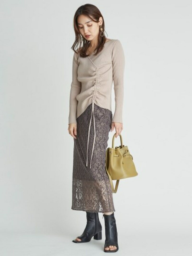 体のラインを拾いすぎない程よいタイトシルエットに、足首が見える軽やかなミディ丈のデザインです。