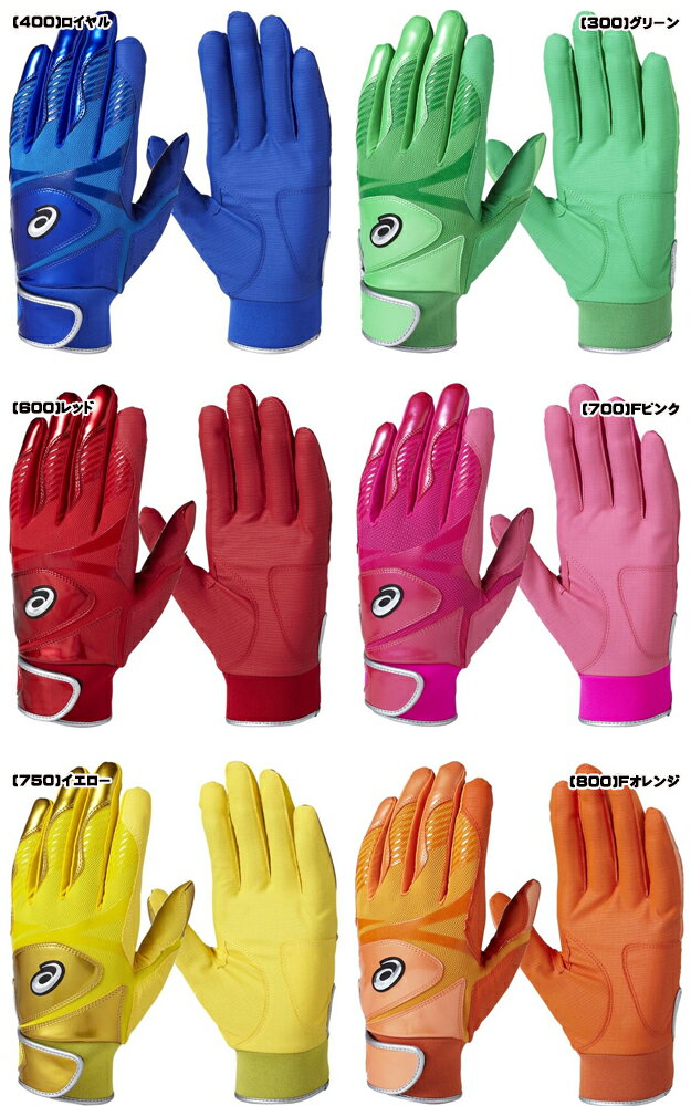 【限定】アシックス バッティンググラブ(両手用) 豊富なカラーバリエーションと光沢素材をアクセントにした限定モデル! ・メール便送料無料 ・当て革補強 ・ウォッシャブル 【商品名】バッティンググラブ(両手用) 【メーカー】アシックス(asics) 【品番】3121A007 【カラー】(400)ロイヤル×シルバー (300)グリーン×シルバー (600)レッド×シルバー (700)Fピンク×シルバー (750)イエロー×シルバー (800)Fオレンジ×シルバー 【サイズ】M(24-25).L(26-27)cm 【素材】 掌側:合成皮革 甲側:合成皮革、ナイロン、ポリエステル メーカー希望小売価格はメーカーカタログに基づいて掲載しています