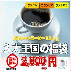 ブラジル、コロンビア、グァテマラ「コーヒー3大王国の福袋」合計1.5kg(約150杯分)=2,000円(税別)送料無料!★2セット以上のご購入で「モカ100g」プレゼント!(同一住所・同一発送日に限ります)